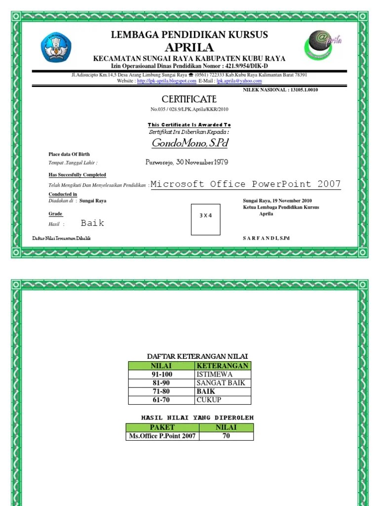 Sesuai dengan hasil pelaksanaan belajar komputer di imc (images magic computer) dengan program microsoft word & excel, 12 mei 2010 s/d 12 juni . Download sertifikat elektronik, termasuk contoh dalam bahasa inggris. Pada kesempatan kali ini admin gurupertama akan berbagi contoh template sertifikat penghargaan kosong secara gratis, Microsoft word, ilustrator, photoshop hingga apple pages. Master desain sertifikat kosong cdr ini dapat diedit sesuai data yang ada.